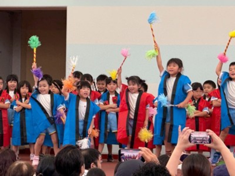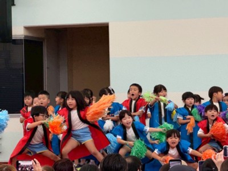 アルバム 年長組・小倉南区「子どもまつり」に参加しました! 2025/09/27 毎年、年長組は童謡まつりに参加していましたが、今年は主催者側のご都合により 開催されず残念に思っていたところ、小倉南区の「子どもまつり」に参加できることができました。 今回は、パワー溢れる「よさこいソーラン節」を披露してきました! 元気な掛け声と、体全体で踊る年長組に会場からたくさんの拍手をいただきましたよ!観覧しているお客様も自然と体が動き出し、一緒に踊られる方もいました♪ 赤と青の法被姿はとても凛々しく、それぞれ手に持つ鳴子やバチにも注目が集まりました。何より、たくさんお客様の前で踊る経験ができたことを嬉しく思います。 終演後は、子どもたちも興奮冷めやらぬ中、達成感とでニコニコ笑顔でした♪ 皆さん、応援ありがとうございました。 << 一覧に戻る