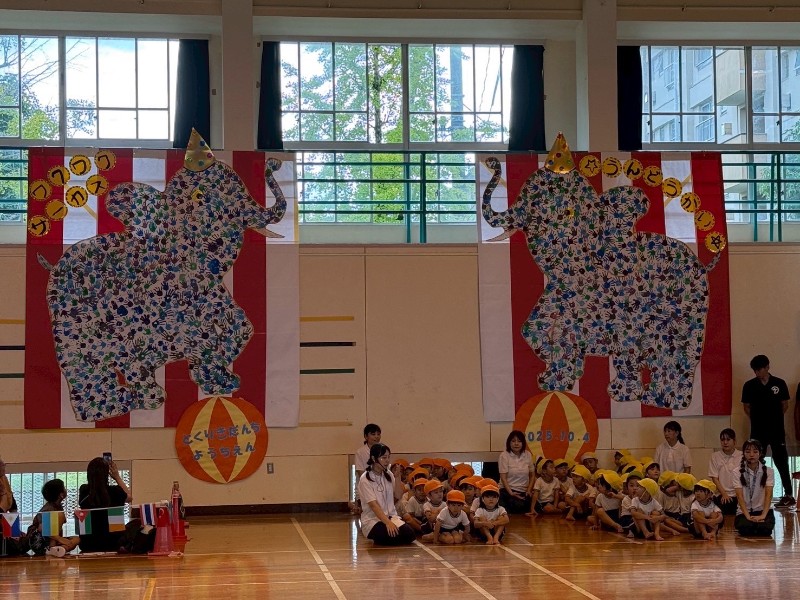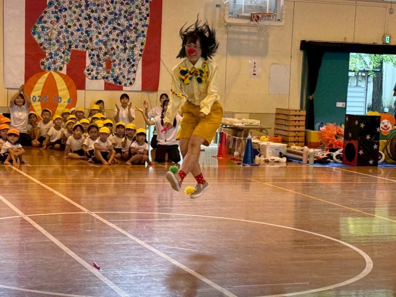 アルバム 年中組・年長組『ワクワクサーカス運動会』 2025/10/04 心配したお天気も何とか持って朝から笑顔満開の子どもたち。 ドキドキの気持ちもありましたが、今日はみんなが太陽♪運動会会場は応援とみんなの声で盛り上がりました! 6月に観覧した木下大サーカスへの興味から「やってみたい!」の気持ちに変わり、幼稚園のサーカスで楽しさが増した子どもたちです。 年中さんは、障害物競争でバイク自電車に乗ったり、綱渡りのように一本橋を渡ったりと本物のサーカスみたいでした♪ 年長さんは、サーカス旋風団になったり、みんなで作った箱でバランス競争をしたり、最後の運動会に力を合わせる姿が輝いていました。リレーで一生懸命走る子どもたち、みんなのマジックでハラハラドキドキ、ワクワクのサーカスリレーとなりました。たくさんの応援ありがとうございました。18日のひよこ組・年少組の運動会も楽しみですね♪ << 一覧に戻る