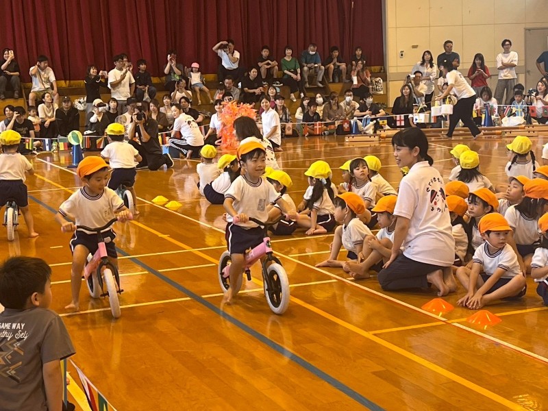 年中さんは、障害物競争でバイク自電車に乗ったり、綱渡りのように一本橋を渡ったりと本物のサーカスみたいでした♪