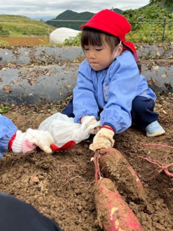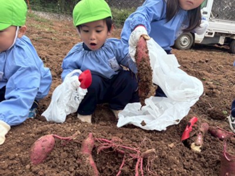 「わあ!でてきた!」「おおきい!」「みてみて!」と土の中のお芋を一生懸命に掘って、みんな大満足でした。