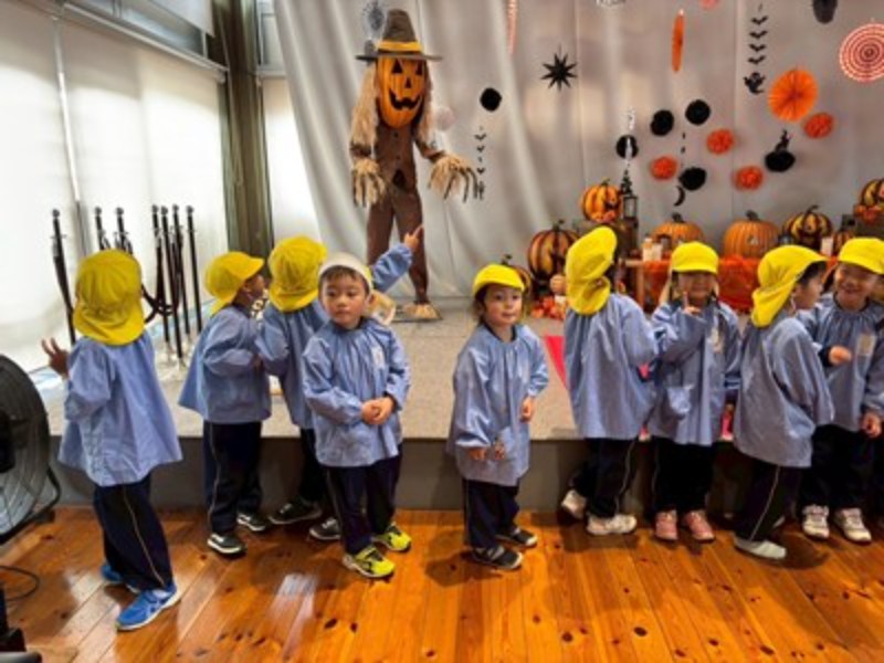 お昼は、平尾台自然の郷へGO! お家からのお弁当をいただき、芝生で元気に走ったり、鬼ごっこをしたり、ハロウィンの飾りがたくさんあるお部屋にも遊びに行きました。