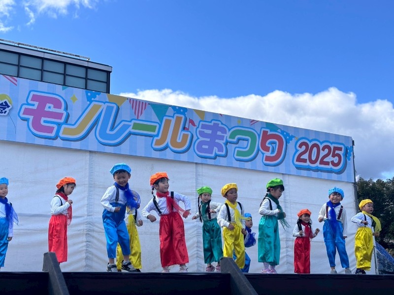 アルバム 年中組 モノレールまつりに参加しました♫ 2025/11/03 毎年、年中組さんが北九州モノレールまつりに参加させていただき、今年も出演してきました! 晴れた青空のステージの上で、素敵な衣装を着て、かっこよくてかわいいダンスを披露してくれました♫ たくさんのお客様で緊張していましたが、大きな拍手と応援でパワーをいただき、みんな元気でニコニコ笑顔で踊ることができました。 応援ありがとうございました! << 一覧に戻る