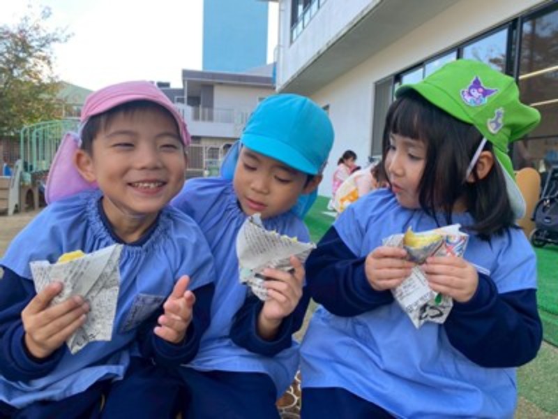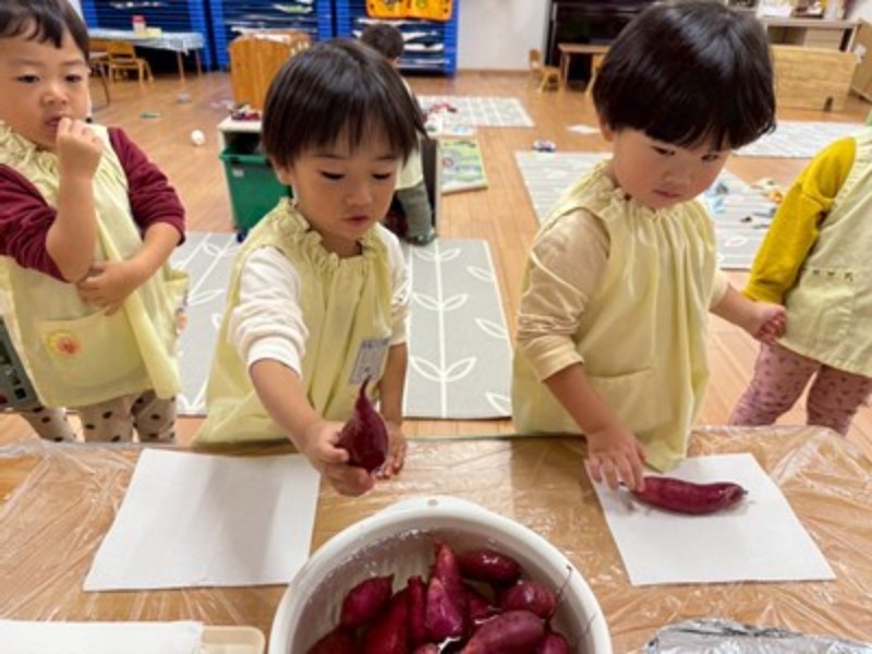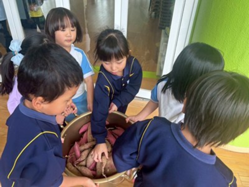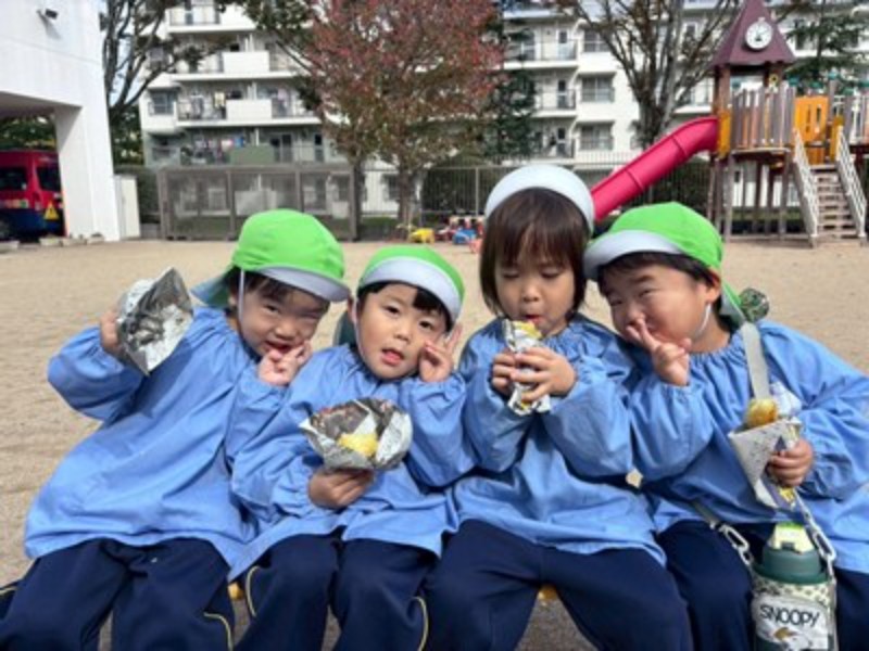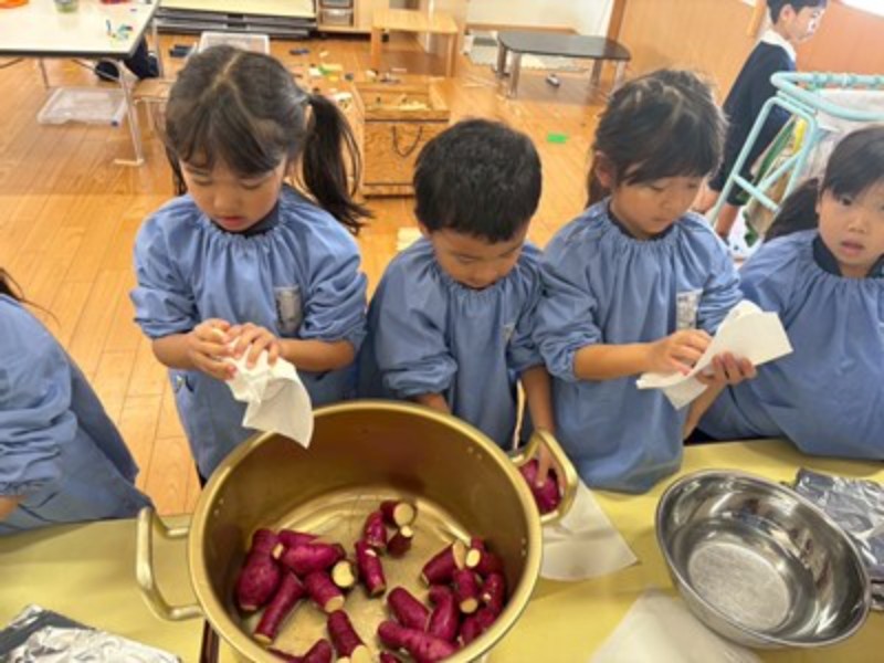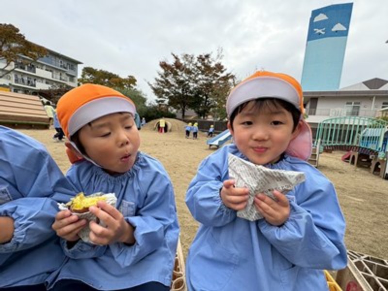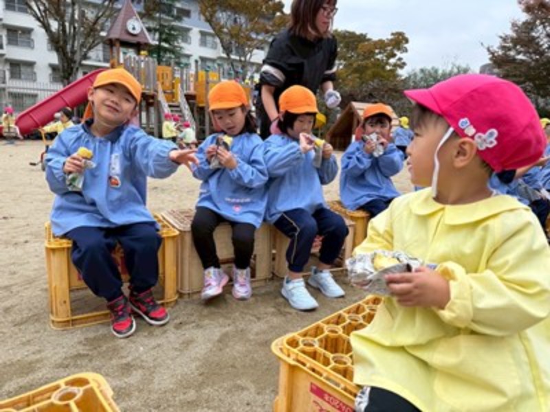 お手伝いに来てくださったパパやママ、先生が焼き芋屋さんになり、美味しい匂いにみんなは「まだかな~?」と出来上がりを楽しみにしていました。