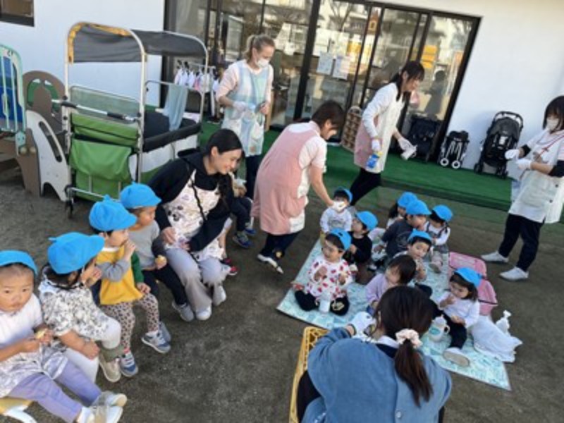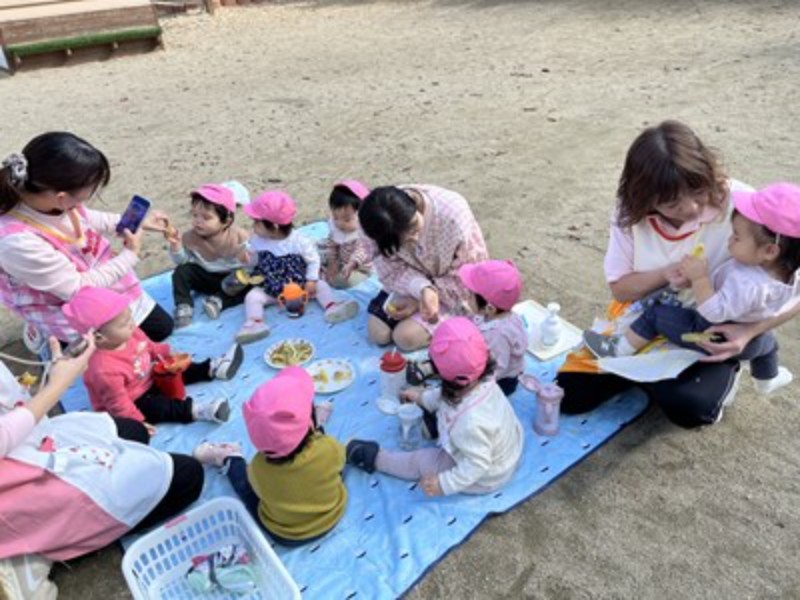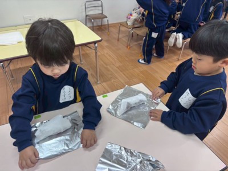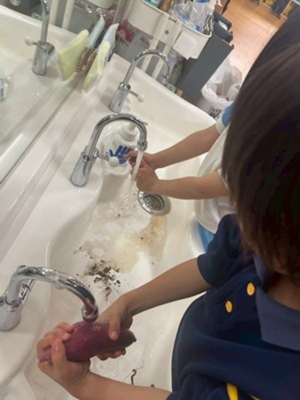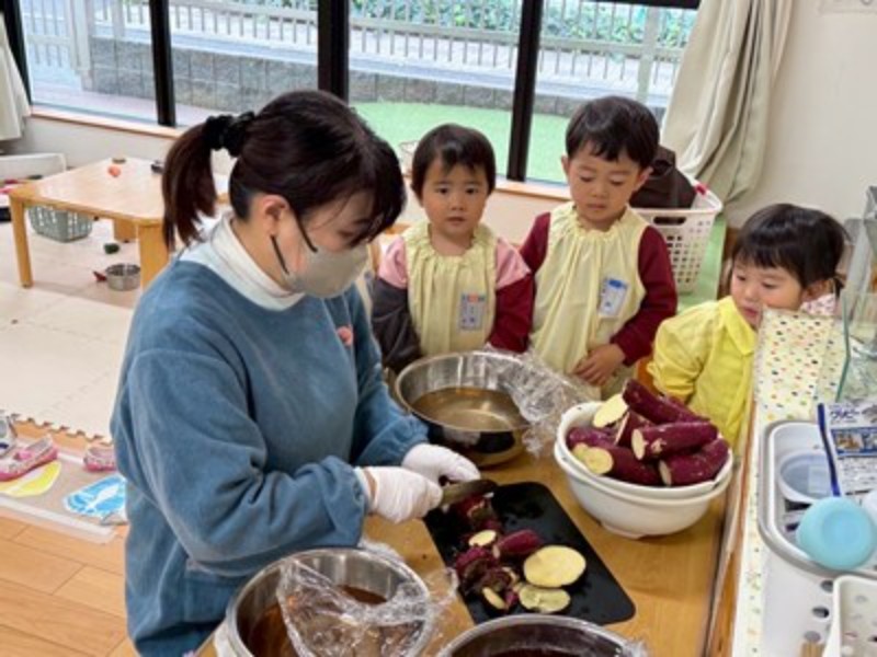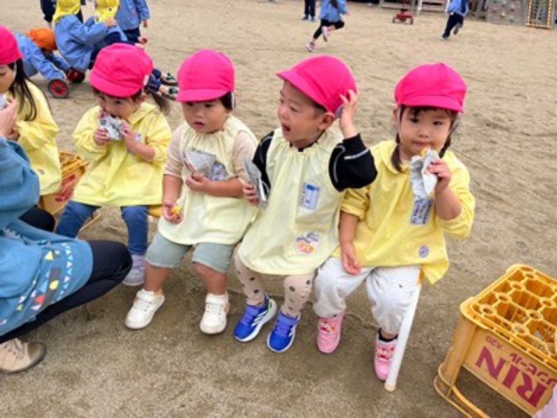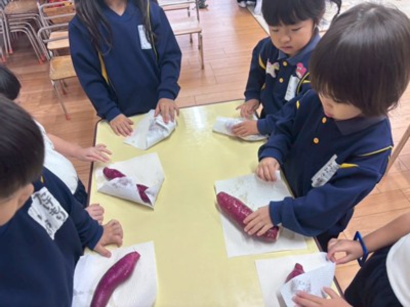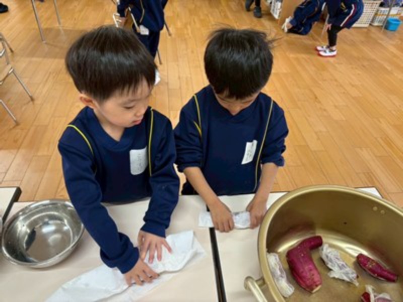 お手伝いに来てくださったパパやママ、先生が焼き芋屋さんになり、美味しい匂いにみんなは「まだかな~?」と出来上がりを楽しみにしていました。