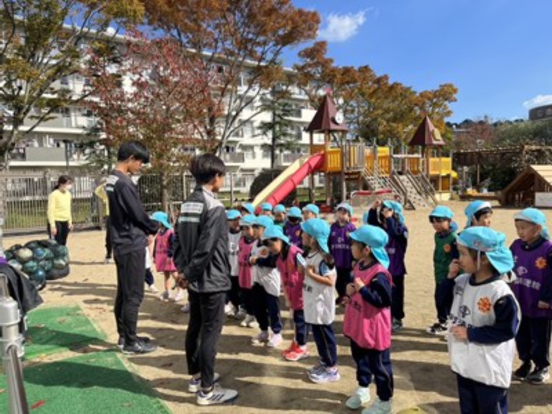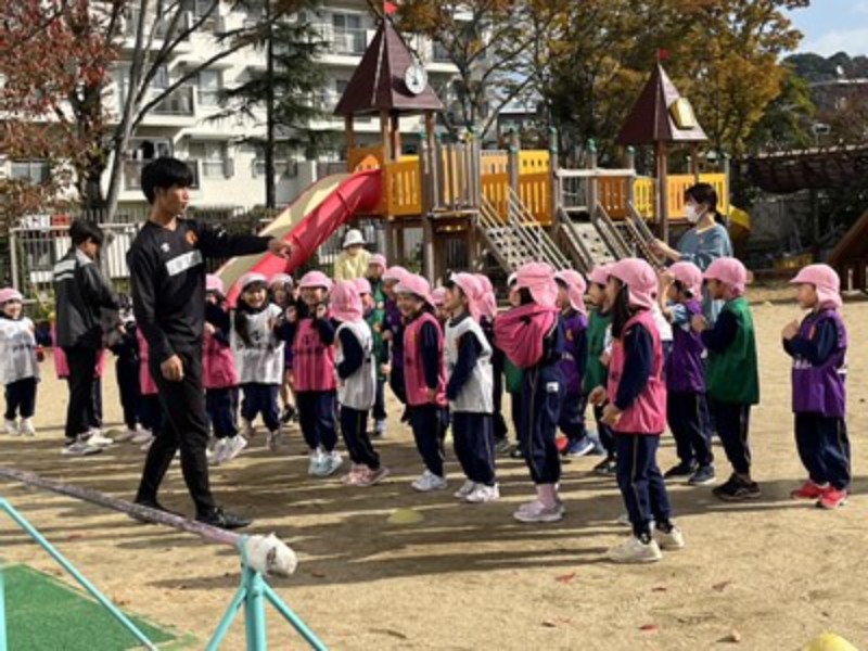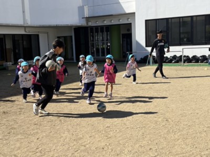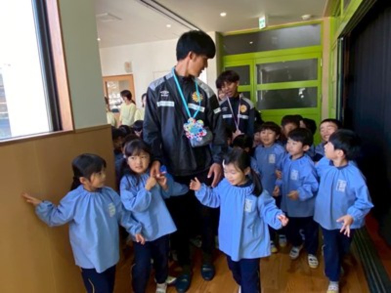 “ギラヴァンツ北九州”の「しゅうコーチ」と「じんコーチ」が幼稚園に来てくださり、