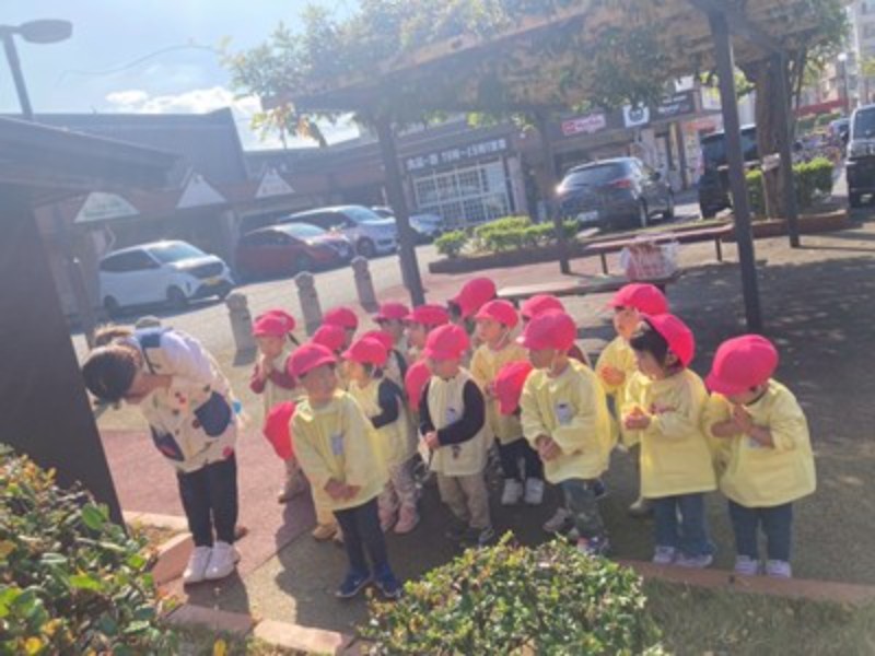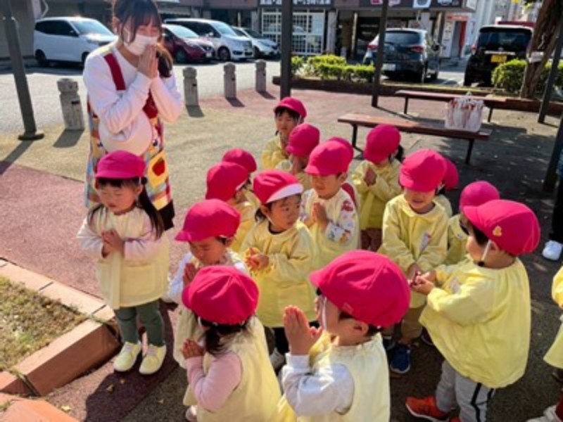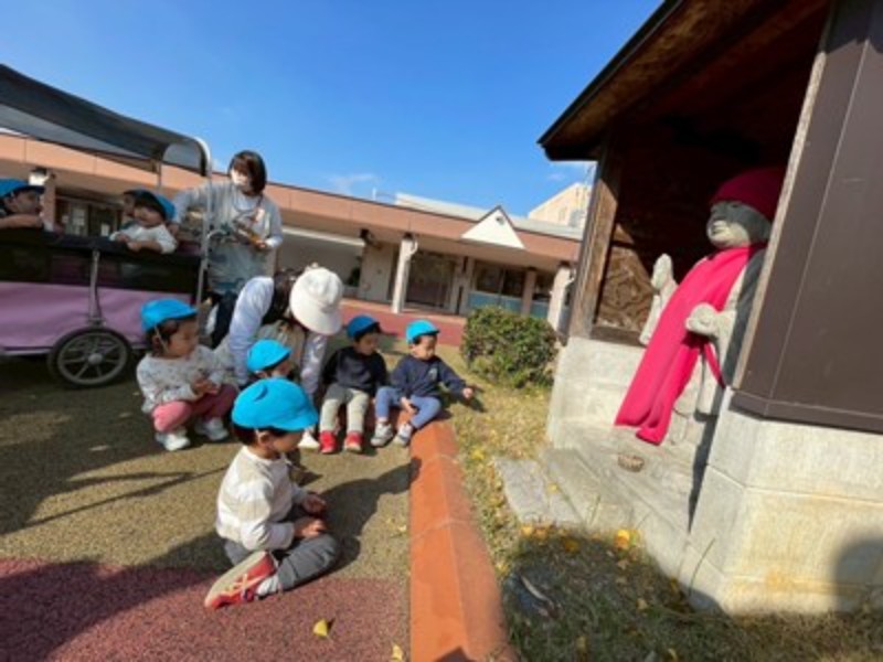 今日、幼稚園のお友だちは蒲生神社に、りす・うさぎ・ひよこ組さんは、ヒトノワの前のお地蔵様にお参りに行ってきました。