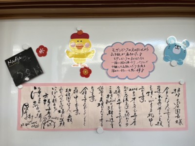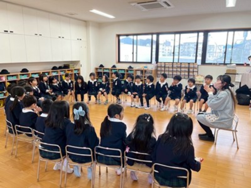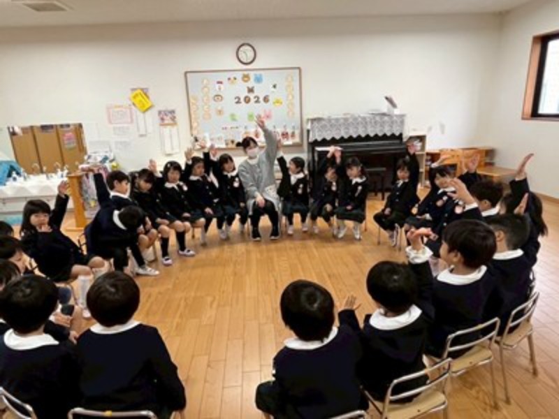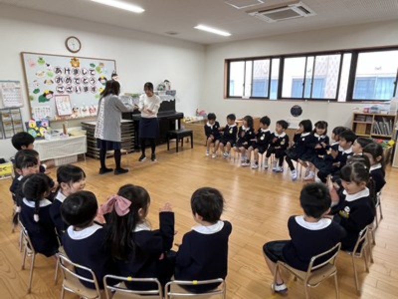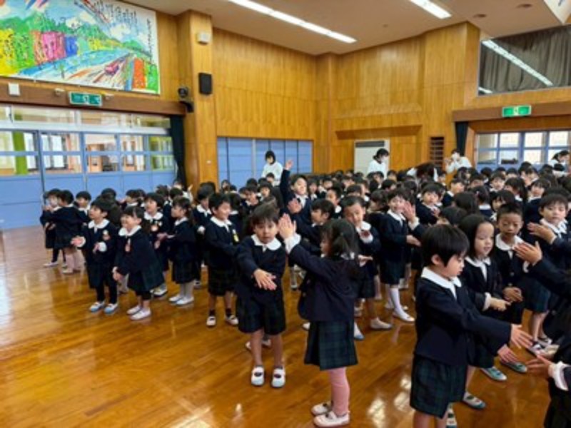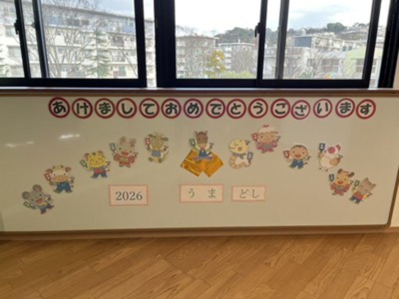 アルバム 三学期が始まりました♪ 2026/01/08 2026年新年を迎え、本日、三学期始業式を行いました。 みんな笑顔で登園して「あけましておめでとうございます。」「ことしもよろしくおねがいします!」と、元気なご挨拶が朝からたくさん聞こえてきましたよ♪ お友だちや先生とみんなで久しぶりに集うことができた始業式、園長先生から、「みんなが冬休みの間、命を守って三学期の始業式に来てくれたことが嬉しかったです」とお話いただき、こうしてみんなで集えることを嬉しく思うスタートとなりました。 式の後は、正月のかるた遊びやわらべうた遊びを皆で楽しみました。帰りは、さくらさくらんぼリズムに合わせて、今年の干支の「うま」になって元気よくお部屋に戻った子どもたち♫ お部屋に戻ってからは久々に会うお友だちに冬休みの思い出を発表し、3学期の楽しい活動を聞いて期待が膨らんだようです。ひよこさん年少組さんのお部屋には、だるまさんも遊びに来てくれましたよ♪ 先日のマルシェで思いを届けた、モザンビーク支援活動の榎本さんから年賀状と、ナジャさんからCDのプレゼントが届き、紹介すると喜んでいました!嬉しいお年玉をいただきましたね。 最後の3学期も元気に遊びましょうね♫ << 一覧に戻る