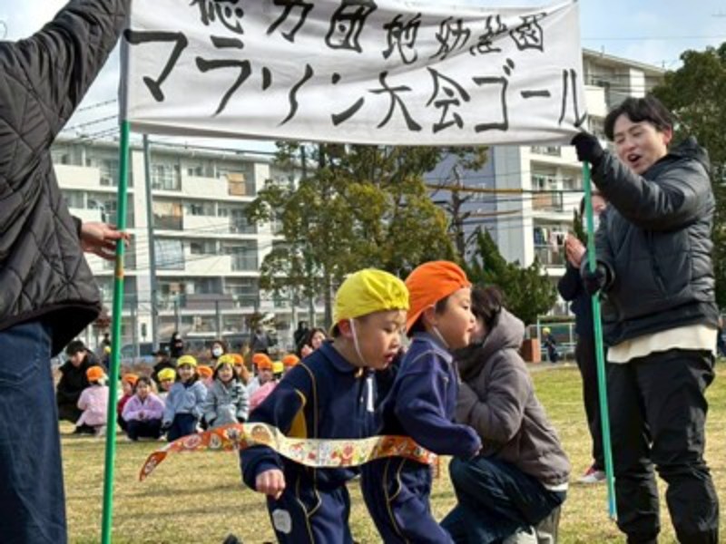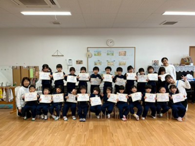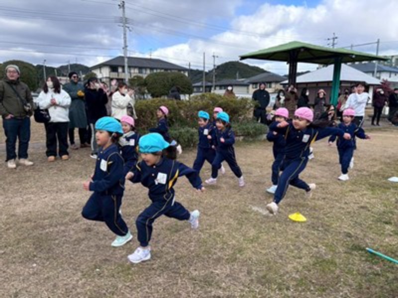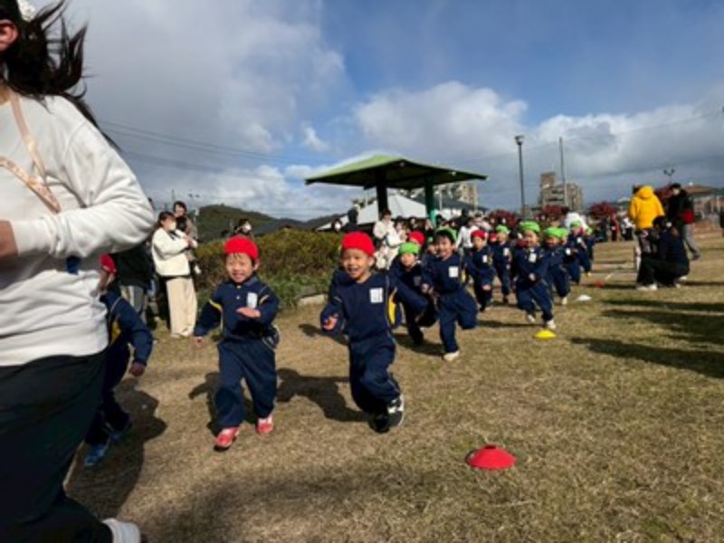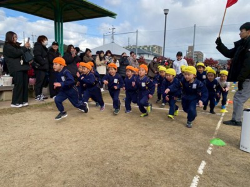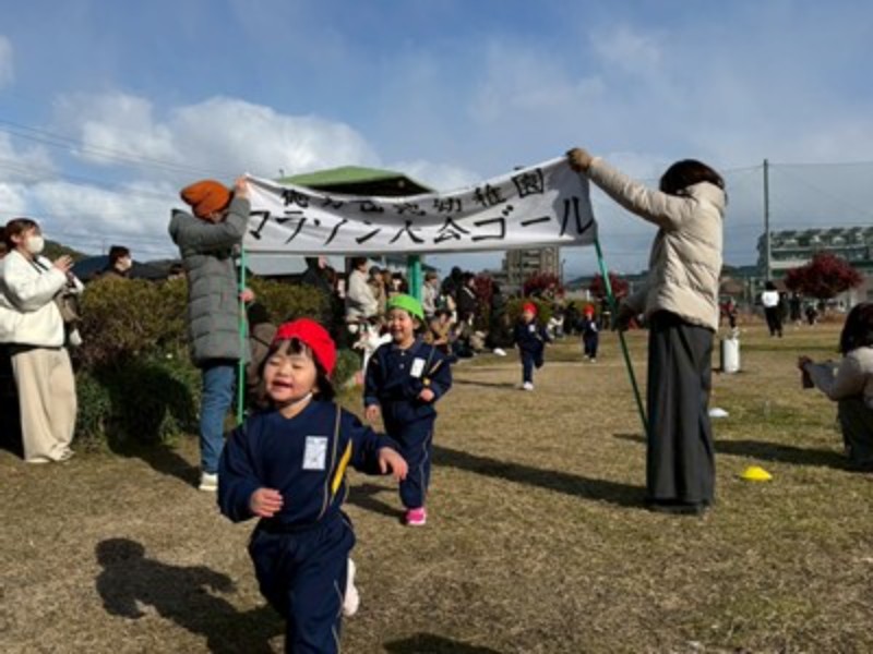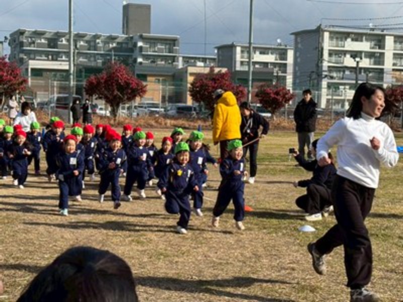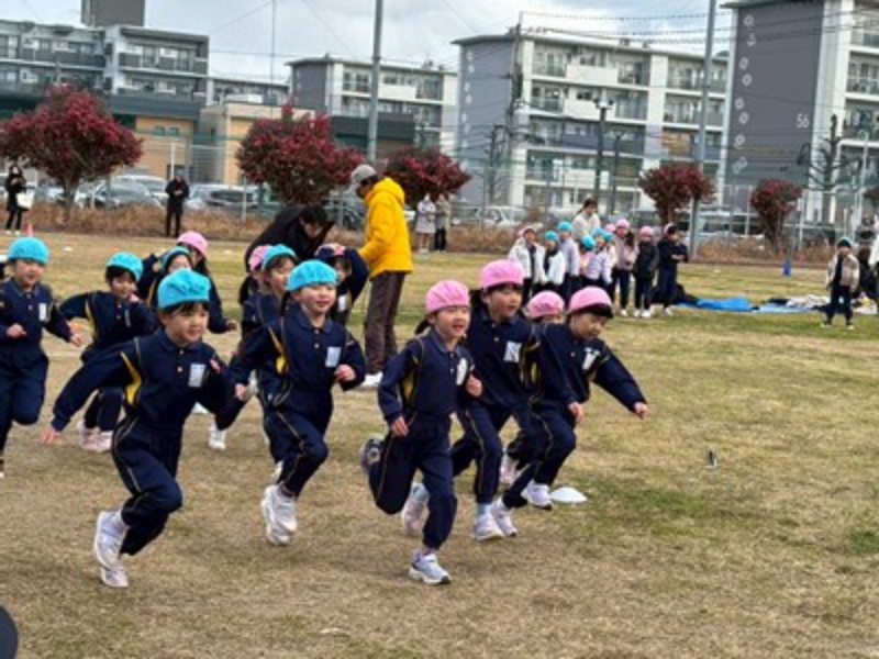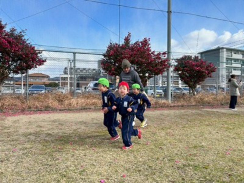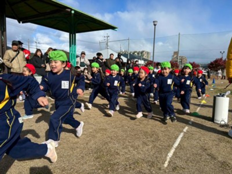 アルバム がんばったね!マラソン大会 2026/01/22 今週一番の寒さと雪予報もあり、心配していたマラソン大会でしたが、朝から「マラソン、がんばる!」の声と、緊張でドキドキしている顔からもそれぞれの思いが伝わってきた登園でした。 朝、コドモンの連絡帳を見ると、ある年少さんのお母さんが「一番目指して頑張って」と言うと、「一番が強いんじゃないよ、最後まで走ることが強いこと!」と返事がありました、と書いてあり、今回のマラソン大会で育みたい思いがしっかり伝わっていることを嬉しく感じました。日々の練習をする中で、『最後まで自分の力で走る、諦めないで頑張る』この気持ちを伝えながら、活動に取り組んできました。自分の心の中に持つ“頑張る気持ち”を、今日のマラソン大会で一人一人が見せてくれた子どもたちです!一人一人に「がんばれ~!」とたくさんの拍手と声援で、寒さの中でもグラウンドが温かさで包まれました。 ちらちら降る雪の中、寒さに負けず最後まで自分の力で諦めずに頑張った姿、友だちと競争しながら自分の力を出し切った姿、小さい時は泣いていたのに頑張って走る姿に、みんな感動しました! 頑張った後は温かいお部屋で『ホットカルピス』でカンパーイ♪持ち帰った賞状は頑張った証ですね。 寒い中、保護者の皆様、体操教室の野田先生・しんご先生、お手伝いくださった幹事様、応援ありがとうございました。 << 一覧に戻る