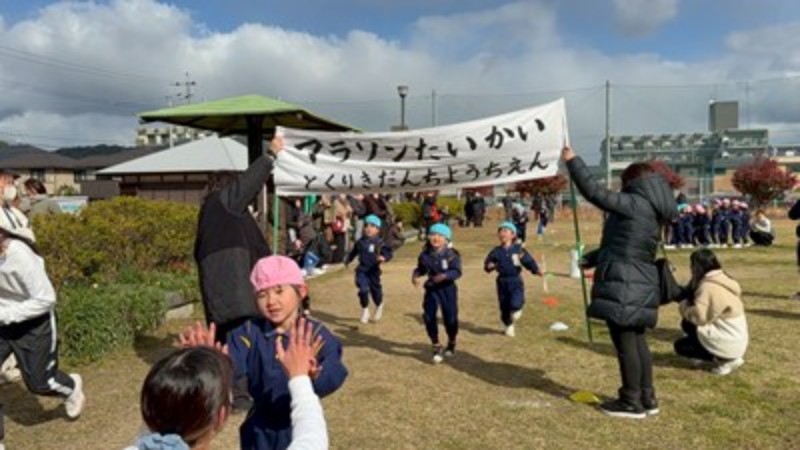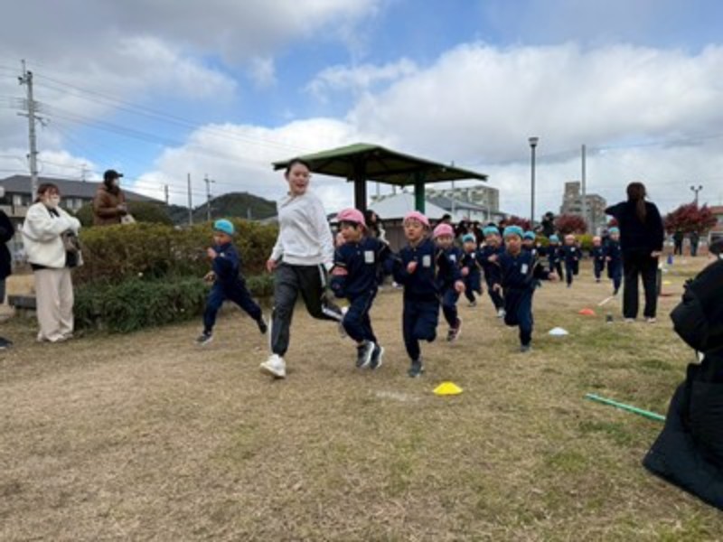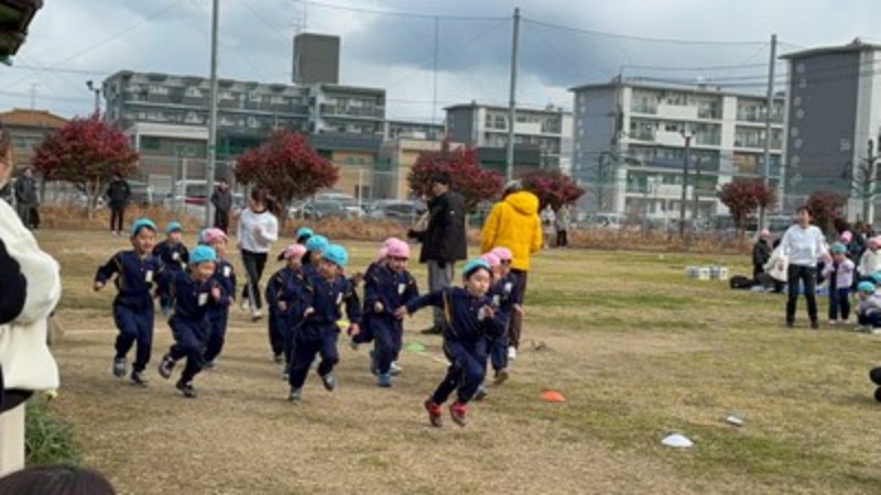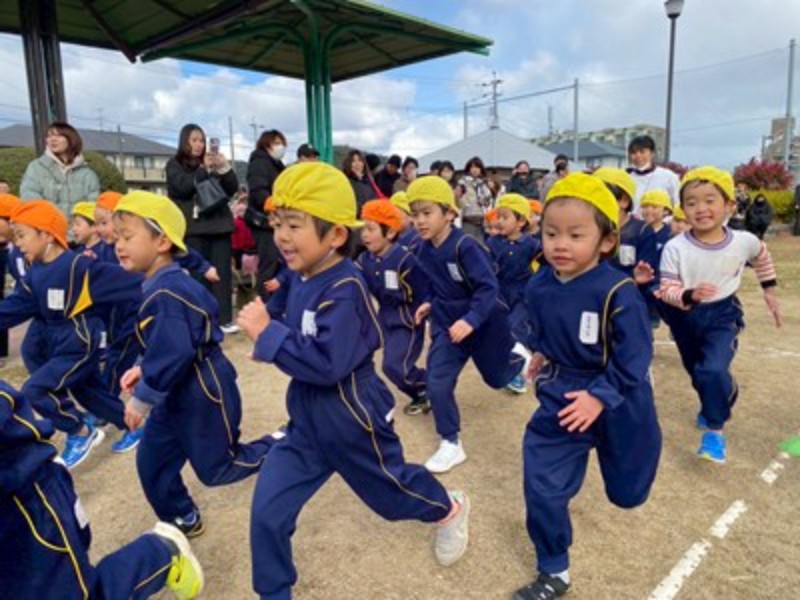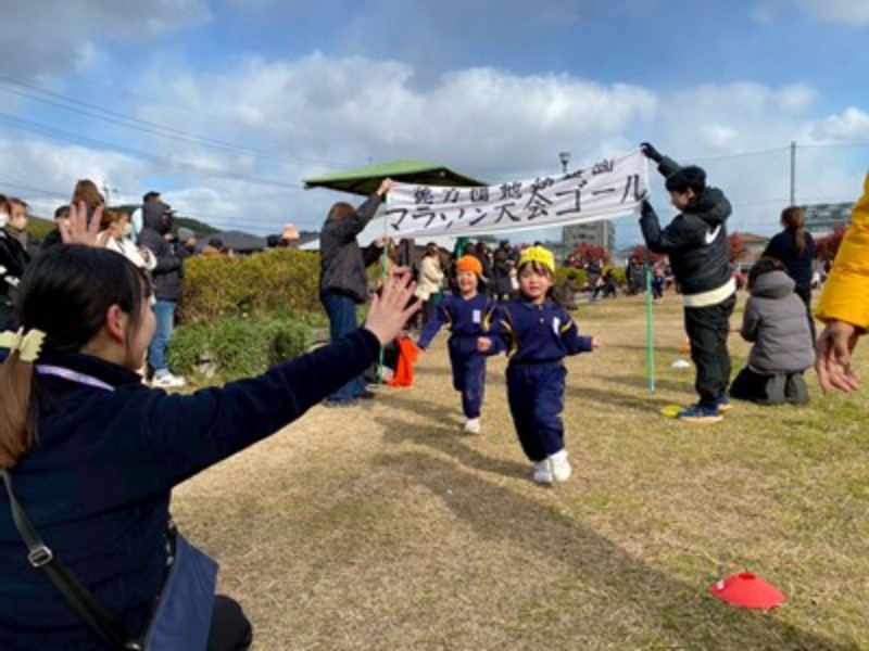 朝、コドモンの連絡帳を見ると、ある年少さんのお母さんが「一番目指して頑張って」と言うと、「一番が強いんじゃないよ、最後まで走ることが強いこと!」と返事がありました、と書いてあり、今回のマラソン大会で育みたい思いがしっかり伝わっていることを嬉しく感じました。日々の練習をする中で、『最後まで自分の力で走る、諦めないで頑張る』この気持ちを伝えながら、活動に取り組んできました。自分の心の中に持つ“頑張る気持ち”を、今日のマラソン大会で一人一人が見せてくれた子どもたちです!一人一人に「がんばれ~!」とたくさんの拍手と声援で、寒さの中でもグラウンドが温かさで包まれました。