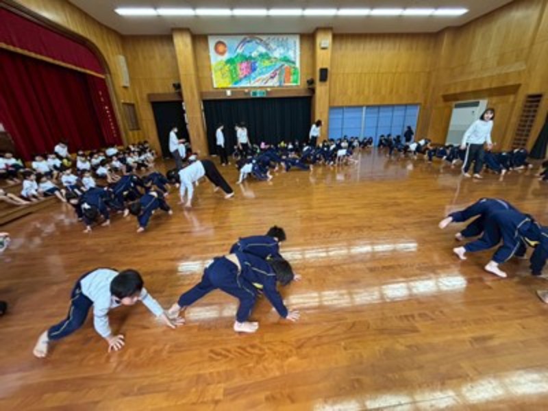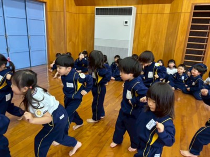 それからは、園で取り組んでいる『さくらさくらんぼリズム』をして遊びました♪初めは、年長さんがお手本を見せてくれて、ピアノに合わせて体を動かすお兄さんお姉さんを憧れの眼差しで見る年中さんも、次は自分の番!と、ピアノの音をよく聞いて、自然と体が動いていました。最後は、年長、年中の姿を見て待ちかねて、まねっこをして上手にうさぎや馬に変身する年少さん!また一緒に集えるのが楽しみになりました。